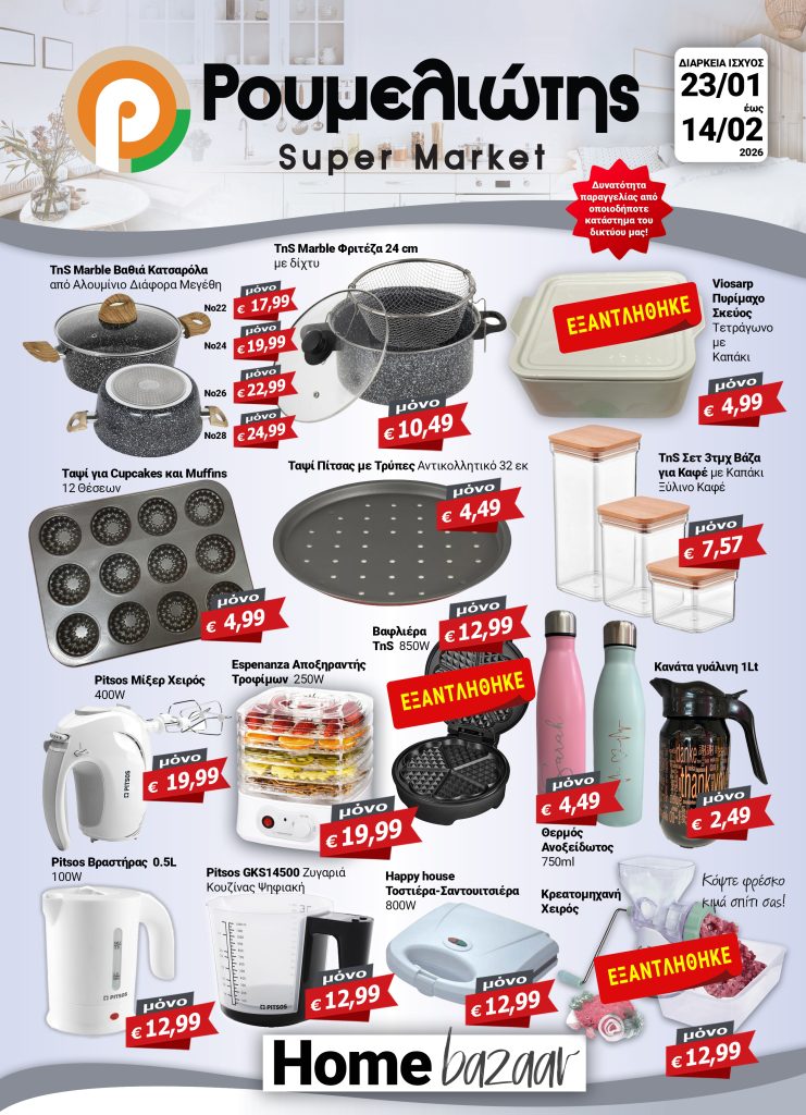 Δείτε ολόκληρο το νέο φυλλάδιο Home Bazaar που ισχύει έως εξαντλήσεως των αποθεμάτων: