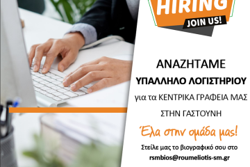 Η εταιρεία μας επιθυμεί να εντάξει στο δυναμικό της έναν/μία Εσωτερικό Λογιστή. Στις άμεσες αρμοδιότητες, θα είναι μεταξύ άλλων, η τήρηση των λογιστικών βιβλίων της εταιρείας, ο έλεγχος και η καταχώρηση των παραστατικών στο σύστημα, αλλά και οι συμφωνίες μεταξύ των τραπεζών, των πελατών, και των προμηθευτών μας.